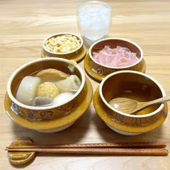 弦さん風おうち居酒屋 まだ朝ですが😅🍺(夫が仕事が朝早いので我が家の生活サイクルは少し早めなんです。なのでこの時間はお昼ごはんの感覚です笑。)キッチンの大掃除が終わり、もう汚したくないのでコンビニで買ってきたおつまみを盛り付けただけですが🤣💦夫は今日仕事納めで帰りに飲み会なので、私も飲んじゃってます笑。この冬も弦さんのお