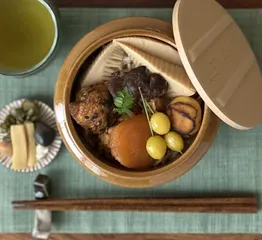 なんて贅沢なお昼ごはん🤩✨ その食べ方は考えませんでした😲 確かに縁まで釉がかかってるから口当たり良いはずですよね! このお釜2つありますが『松茸釜めし』として食べた以外はもったいなくて使ってないので、かきこんでの口当たり⋯感じたことないかも😅 一回何か汁物入れて、かきこみ体験してみようかしら🙄