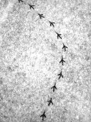雪上の足跡 薄く降った雪の上に続く野鳥の足跡はまるで水墨画のようです。