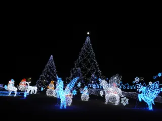 照明が織りなす冬の夜景 毎年冬季に素晴らしいイルミネーションが見られるので楽しみに訪れています。丁度ツリーの真上に月がきてとても楽しめました。