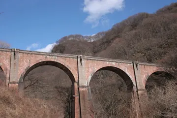 冬山にそびえ立つ 山もめがね橋も一色になる冬の季節は、まるで時間が止まっているようです。