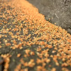 独特の香りを漂わせて、1週間ほどで散ってしまう金木犀の花。地面にこぼれ落ちてなお美しいです😊