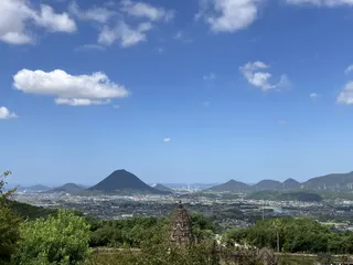 秋の讃岐富士 左奥の色が違う山が香川県の飯野山、讃岐七富士の一山です。まだ暑いですが、周辺は少しずつ葉の色が変わりつつあります🌳