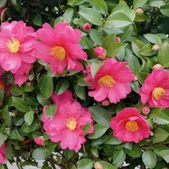 サザンカ いつもの散歩道。 冬の寒さも、サザンカの色彩が暖かさをもたらしてくれる❤️ 穏やかに広がる心の庭園。