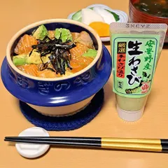 サーモンアボカ丼 オンラインで[生わさび]を購入したのでそれを使って作りました🐟🥑✨ 【材料】 ・生わさび・サーモン・アボカド・ご飯・醤油・すりおろしにんにく・ごま・刻み海苔 *全てお好みの量で 【作り方】 ① サーモンを食べやすい大きさに切る② ボウルに